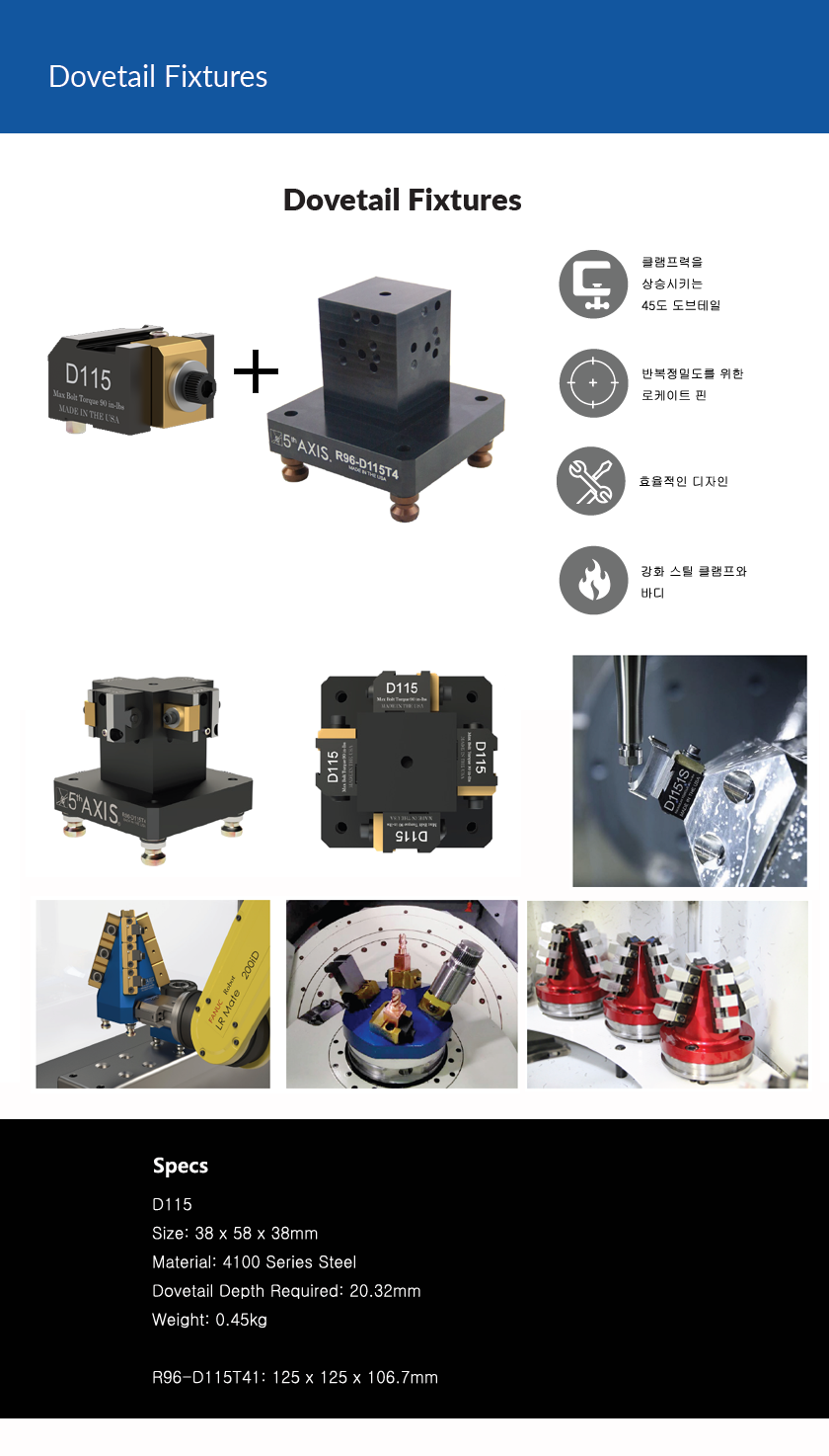 • 5축 CNC 도브테일 고정장치로 CNC 가공 작업의 잠재력을 최대한 활용