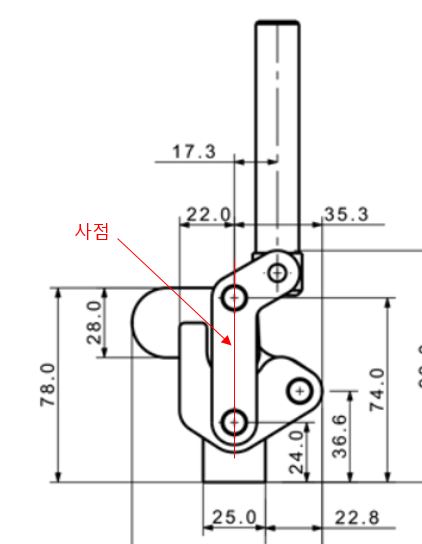 2. 링크와 핀이 이루는 사점에서 얻어지는 잠금 기능. 고정 대상의 물체가 움직이면 잠금기능이 풀릴 수도 있음.